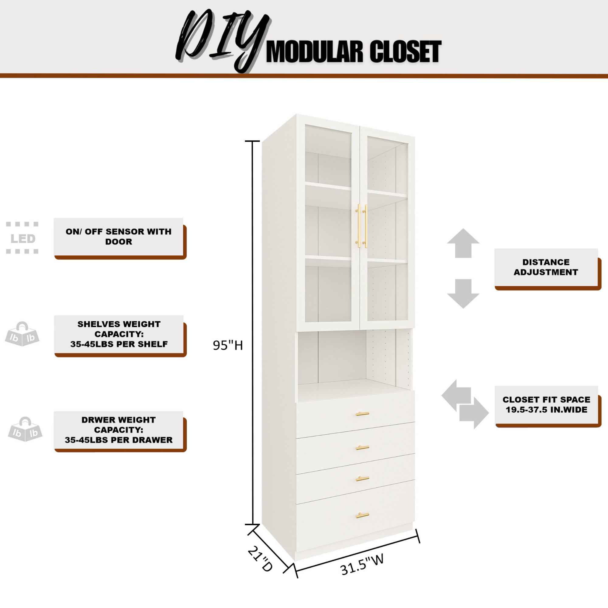 Closet System with LED Light (Large Storage Space | 114″ W x 95″ H x 21″ D)