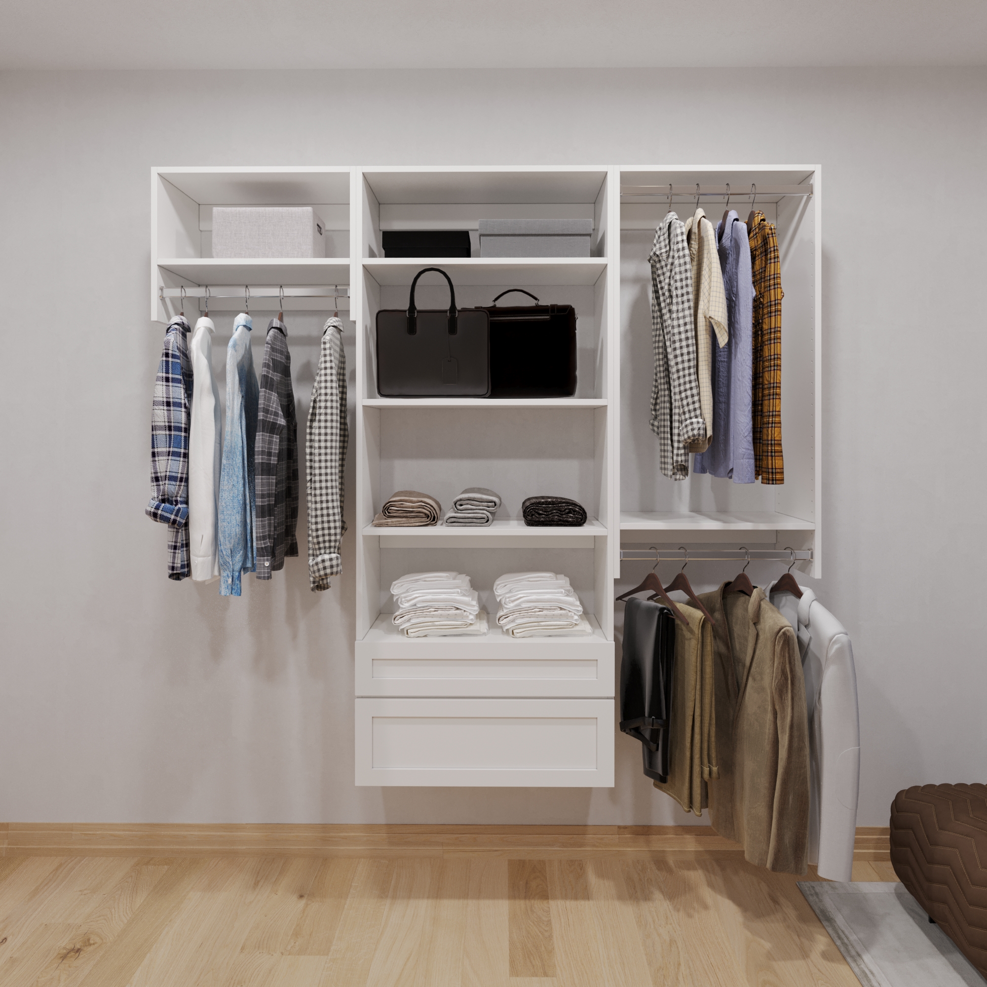 Transform your space with our Mounted Closet System—an ideal combination of versatility, durability, and style, designed to elevate your storage solutions and bring order to your living space.