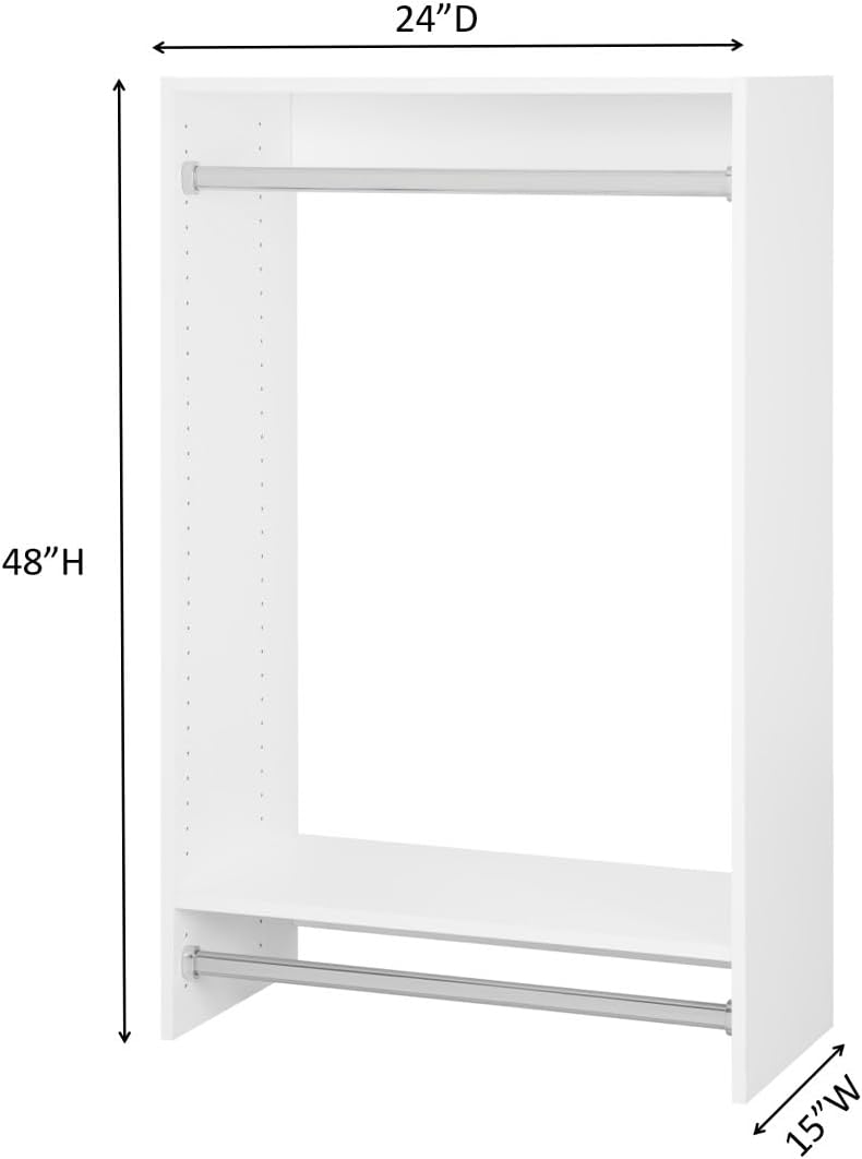 The Module Closet features dimensions of 15″Dx18″Wx48″H, equipped with 2 closet hanging sections and 1 closet shelf with drilled holes for customizable assembly. The JY closet system offers 4 width sizes (18/24/30/36), providing a diverse range of choices to suit your unique storage space.