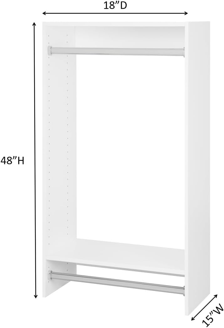 The Module Closet features dimensions of 15″Dx18″Wx48″H, equipped with 2 closet hanging sections and 1 closet shelf with drilled holes for customizable assembly. The JY closet system offers 4 width sizes (18/24/30/36), providing a diverse range of choices to suit your unique storage space.